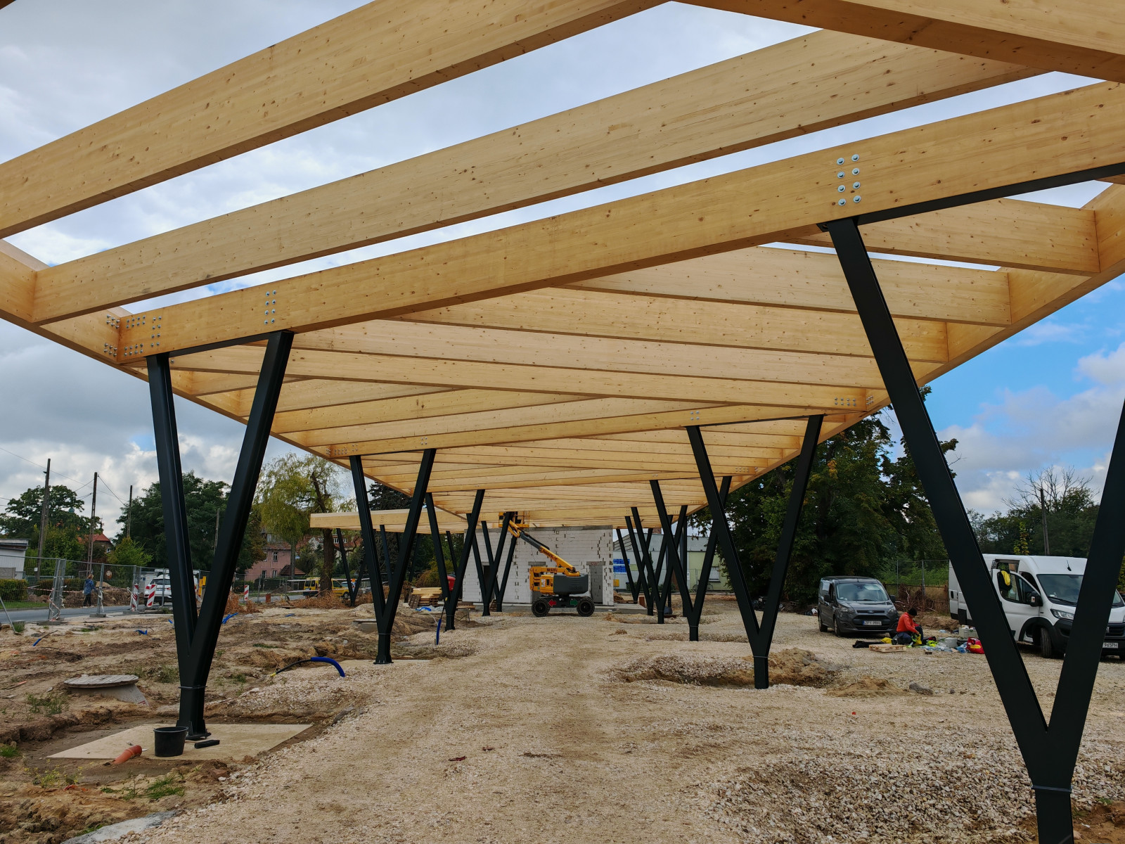 Dank des hohen Vorfertigungsgrades und der CNC-gestützten Bearbeitung konnte die Montage der Dachkonstruktion in weniger als drei Wochen abgeschlossen werden. Dies unterstreicht die Effizienz moderner Holzbausysteme und der hochgradigen werksseitigen Vorfertigung im modernen Holzbau – auch im Bereich von Infrastrukturbauten.