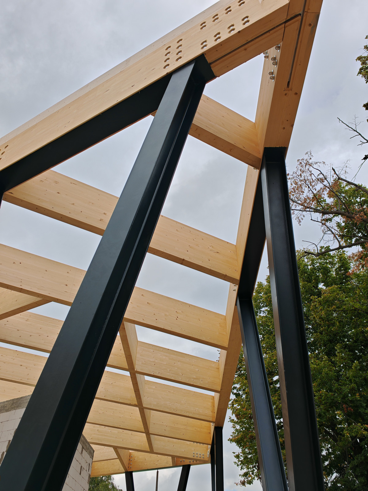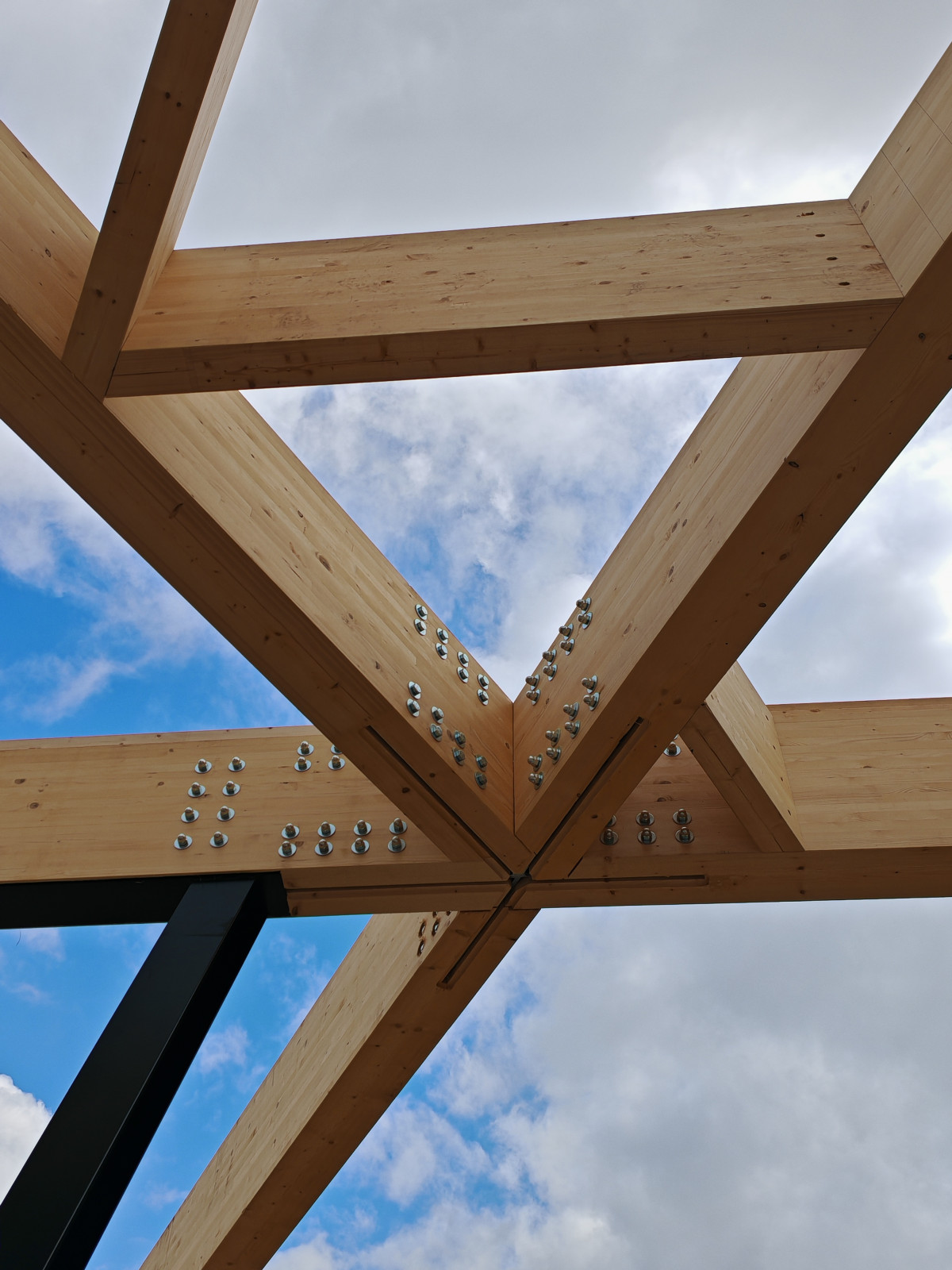 Die Ingenieurholzstruktur umfasst insgesamt 16 Knotenpunkte und erforderte mehr als 85 m³ Brettschichtholz sowie eine große Anzahl statisch relevanter Verbindungsmittel.