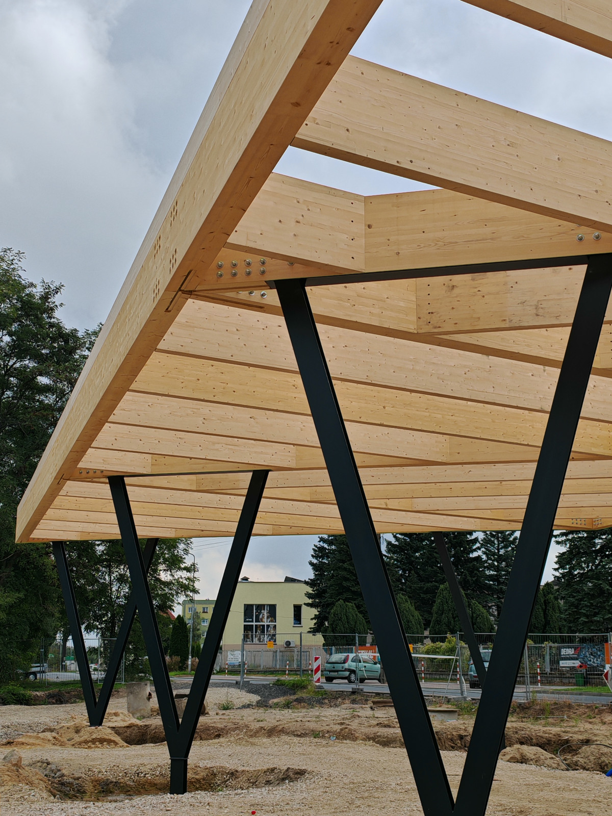 Öffentlicher Busbahnhof in Szprotawa mit Dachkonstruktion aus Brettschichtholz